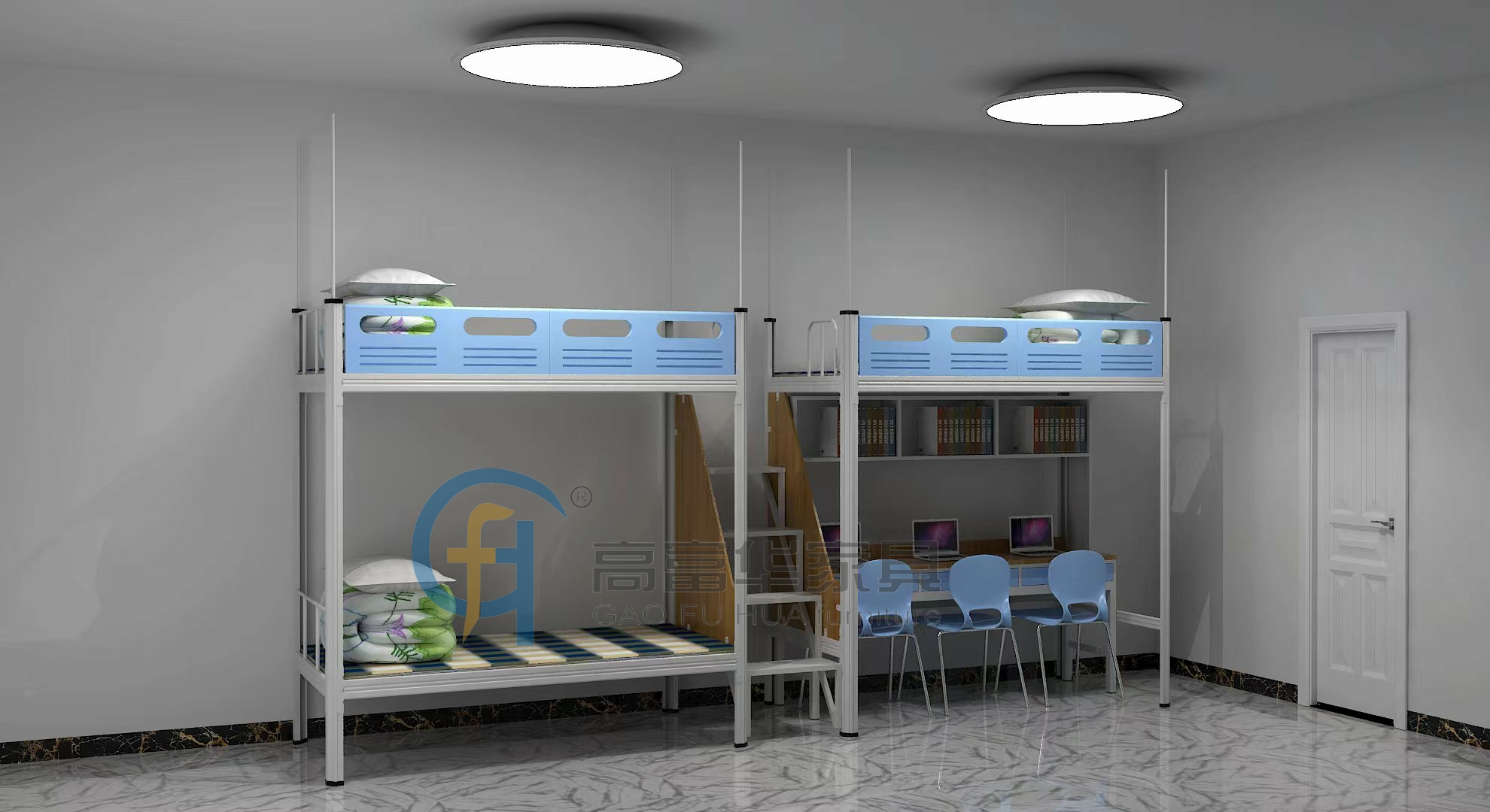 學生宿舍公寓床采用1.2mm冷軋鋼材質,硬度強,承重高達500kg。無論是體重偏重的同學還是喜歡在床上翻滾玩耍的同學,都能輕松應對,無需擔心床體變形或損壞。讓你在享受舒適睡眠的同時,也能感受到高華家具品質的卓越。