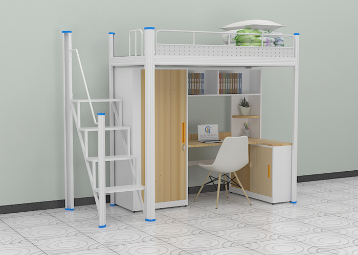 廣東高華家具宿舍公寓床廠家的深圳公寓床-GH-G-007款式新穎,功能實用,采用環保0甲醛烤漆,無論悶熱潮濕都恍然如新。 工藝設計上,采用先進的卡口式連接,這種連接的優點在于承重性強,穩固性好,上下床時非常平穩,不易搖晃,安全舒適,整張床可承重500公斤,經久耐用且十年質保,可以適應各類宿舍。